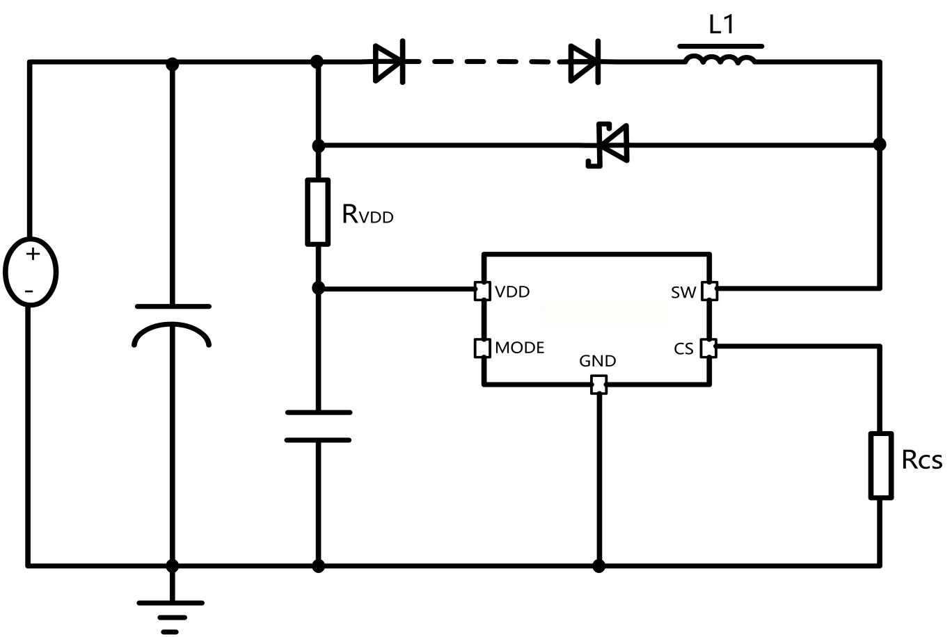 電流檢測電阻RCS到芯片CS引腳以及GND引腳的連線需短而粗,以減少連續寄生電阻對輸出電流精度影響。